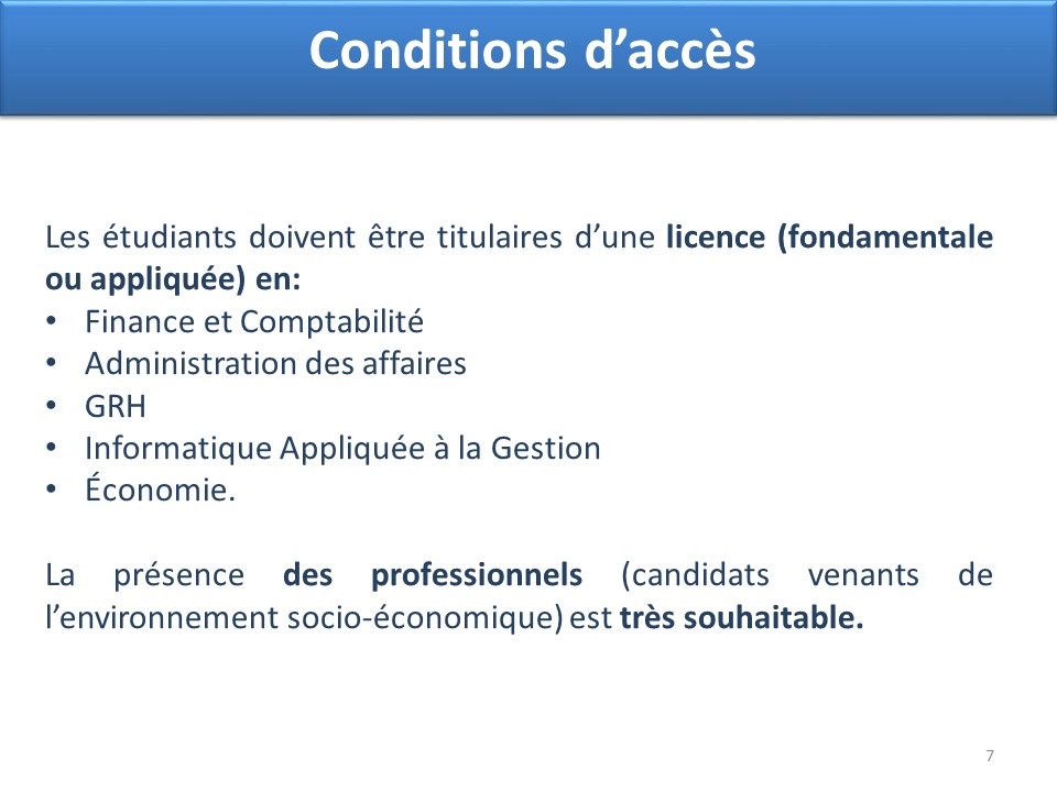 | Mastère professionnel en Contrôle de Gestion et Business Intelligence | ||||||