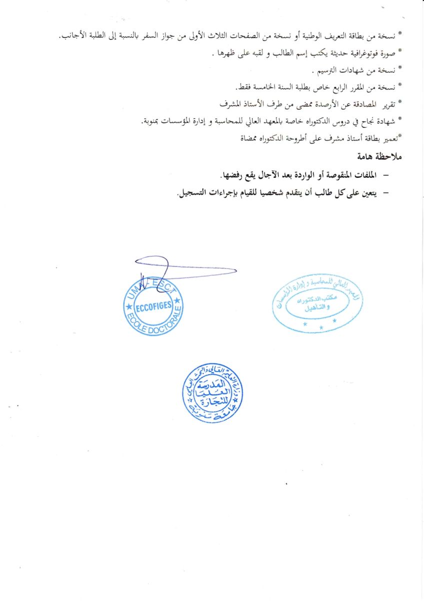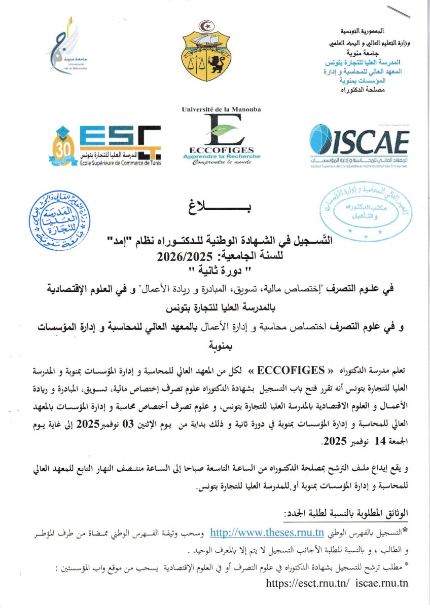 بلاغ حول التسجيل في الشهادة الوطنية للدكتزوراه نظام "أمد" للسنة الجامعية 2025/2026 (دورة ثانية)